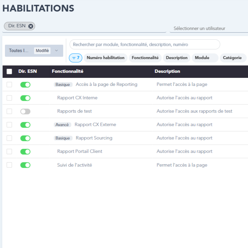 Les habilitations granulaires vous permettent de configurer finement les droits d’accès : chaque collaborateur dispose d’une vue personnalisée des données, conforme à son rôle, son niveau hiérarchique et son périmètre d’intervention :